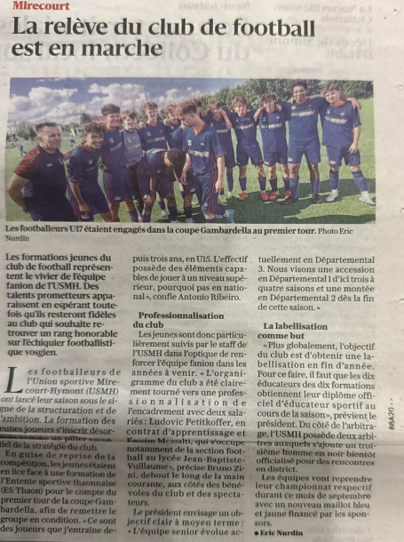 Pour le mois d'octobre, le club de foot de l'USMH reversait 10 euros par but inscrit. Au début, uniquement pour les 2 équipes séniors et par la suite, toutes les catégories ont pu participer au challenge Octobre Rose.